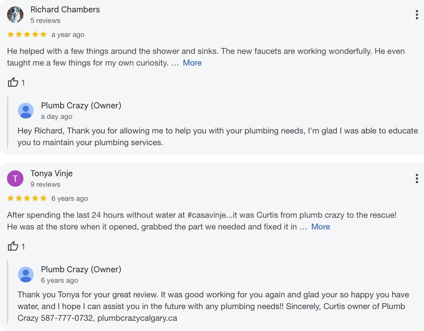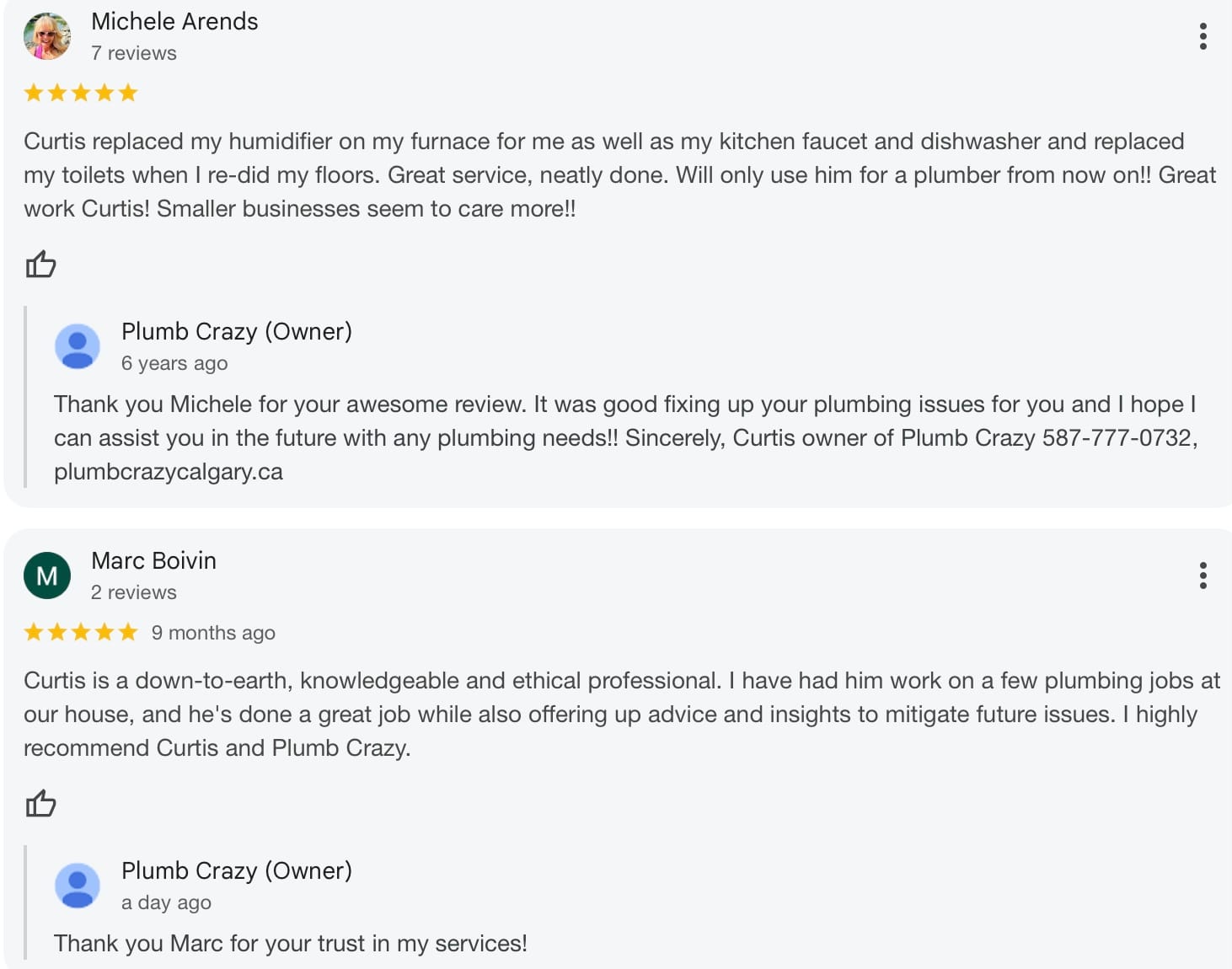 Curtis is known for his transparent pricing, punctuality, and the high standards he sets for his work, ensuring that your plumbing needs are met quickly and effectively. Being a homeowner in Calgary, you can trust Curtis at Plumb Crazy Mechanical to get the job done right the first time.